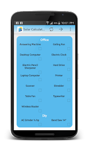 เพื่อเริ่มใช้แอป ผู้ใช้ต้องทำตามขั้นตอนสามขั้นตอนง่าย ๆ ก่อน คือเลือกอุปกรณ์ไฟฟ้าที่จะใช้ ต่อมากำหนดปริมาณและการใช้งานประจำวันของอุปกรณ์ สุดท้ายกำหนดระบบและกดปุ่ม "คำนวณ" แอปจะคำนวณจำนวนแผงโซล่าและแบตเตอรี่ที่จำเป็นสำหรับการใช้งานประจำวันโดยอัตโนมัติ